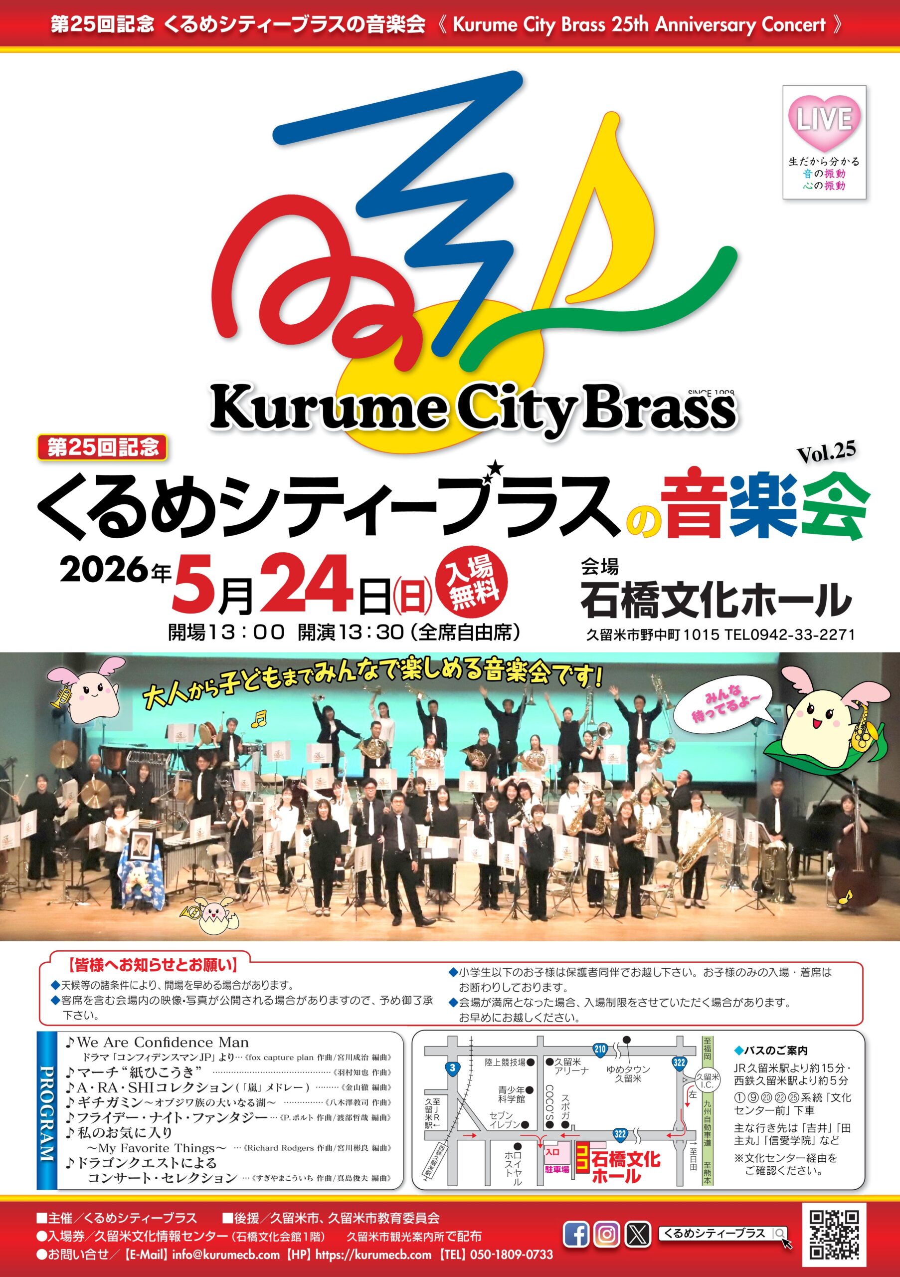 くるめシティーブラスの音楽会vol.25 2026年5月24日(日) at.石橋文化ホール ![]() |